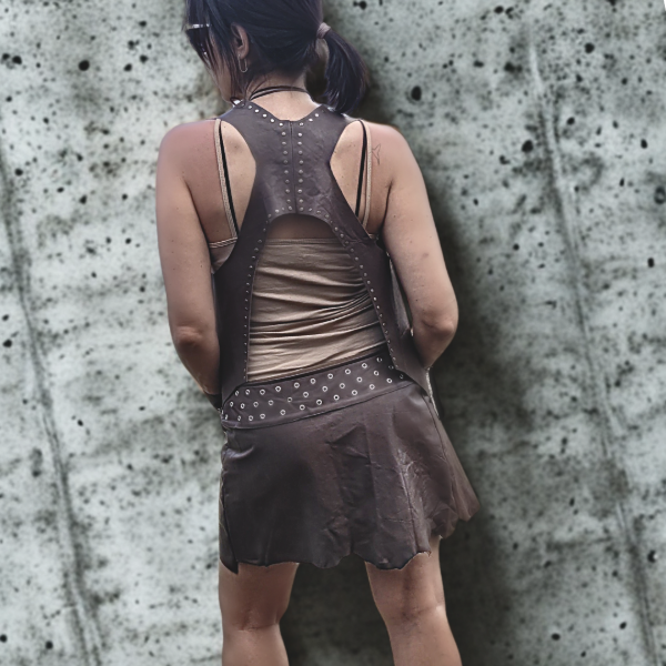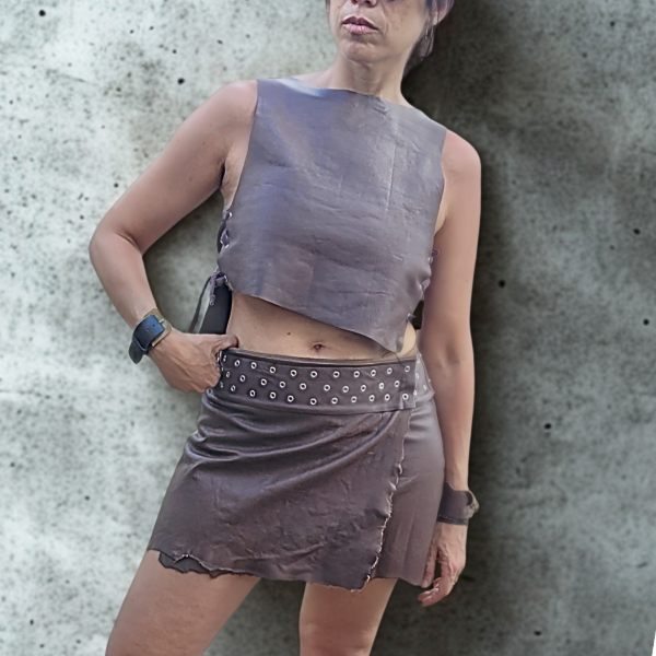 La Mini Falda AVRIL es una pieza artesanal confeccionada en 100% cuero, con un diseño orgánico y terminaciones irregulares que resaltan la esencia natural del material. Su estilo es canchero, moderno y versátil, ideal para elevar cualquier outfit tanto de día como de noche.